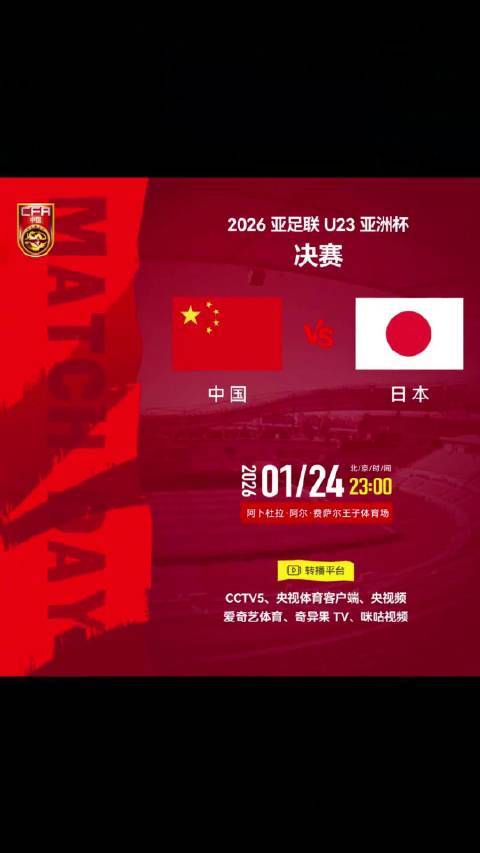 时隔22年,中国男足再战亚洲之巅!年轻国足迎战日本,转播计划全公布北京时间2026年1月24日晚23:00,沙特阿拉伯的阿卜杜拉·阿尔·费萨尔王子体育场将迎来一场亚洲足坛的焦点对决。中国U-23国家男子足球队将在这里与日本U-23国家队争夺本届U23亚洲杯的冠军。为了迎接这场历史性的决赛,CCTV5、央视体育客户端、央视频、爱奇艺体育、奇异果TV、咪咕视频等...